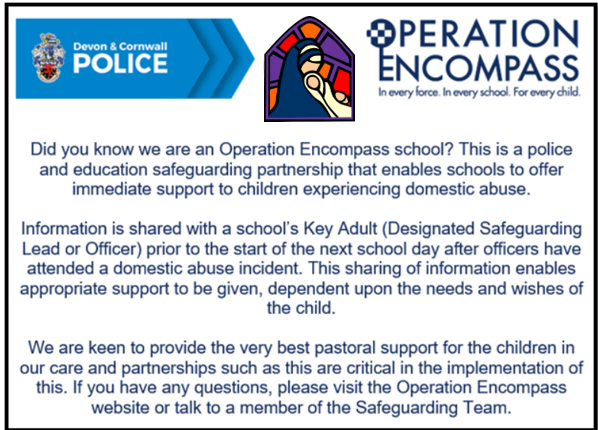 Operation Encompass ensures that there is a simple notification to a school’s trained Designated Safeguarding Lead /Officer (known as key Adult) prior to the start of the next school day after an incident of police attended domestic abuse where there are children related to either of the adult parties involved.